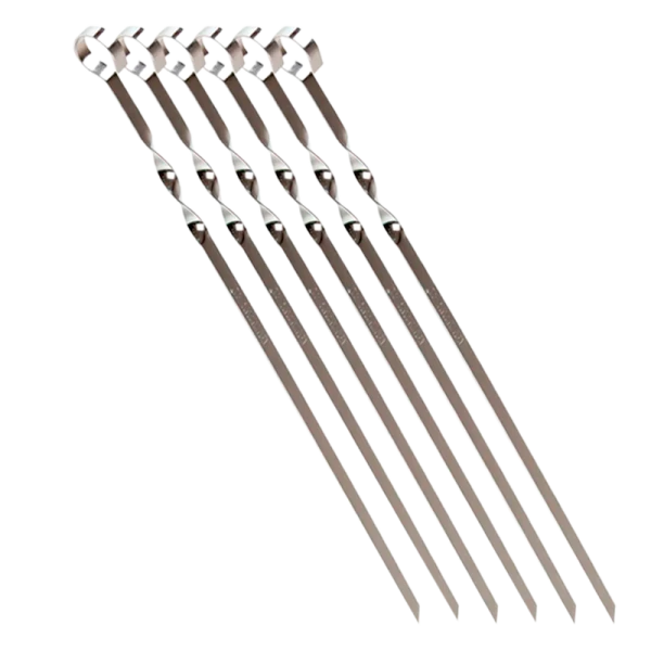 Шампуры изготовлены из прочной и безопасной пищевой стали. Хромированное покрытие придает шампурам надежные антикоррозийные свойства. Благодаря удобной витой ручке шампуры плотно располагаются в пазах мангала и за счет этого не проворачиваются, что облегчает процесс жарки шашлыка, а также способствует максимально равномерному приготовлению продукта.