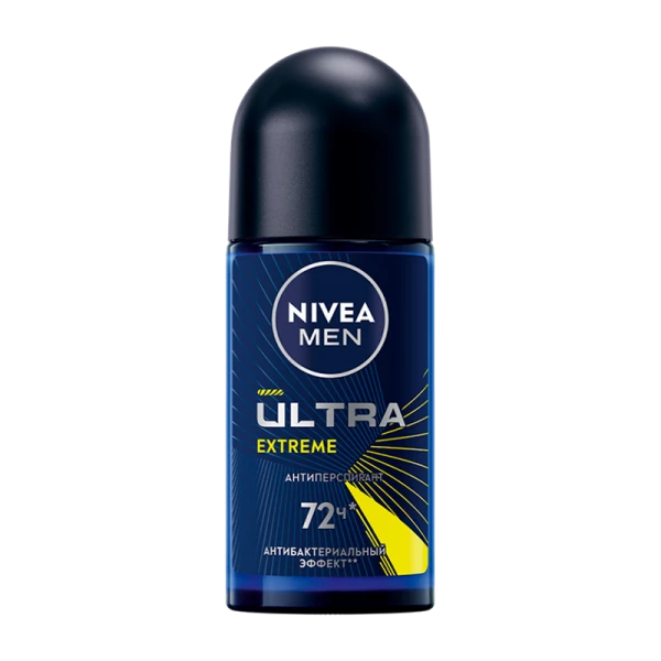 Шариковый дезодорант-антиперспирант NIVEA MEN ULTRA EXTREME с экстремальным ароматом перца, ягод можжевельника и грейпфрута. Роликовый антиперспирант легко наносится в пару движений и обеспечивает защиту от неприятного запаха на 72 часа*.