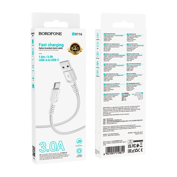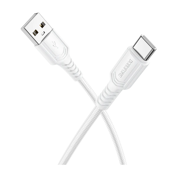 Кабель Borofone BX116 USB (m)-Type-C (m) 1м 3.0A нейлон белый.