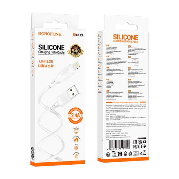 Кабель Borofone BX113 USB (m)-Lightning (m) 1м 2.4A силикон белый (1/360)