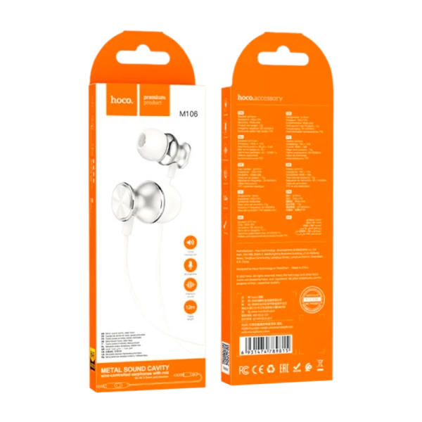 Наушники внутриканальные HOCO M106 с микр. серебряный (1/420)