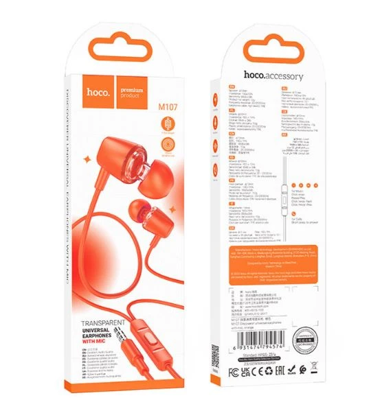 Наушники внутриканальные HOCO M107 с микр. оранжевый