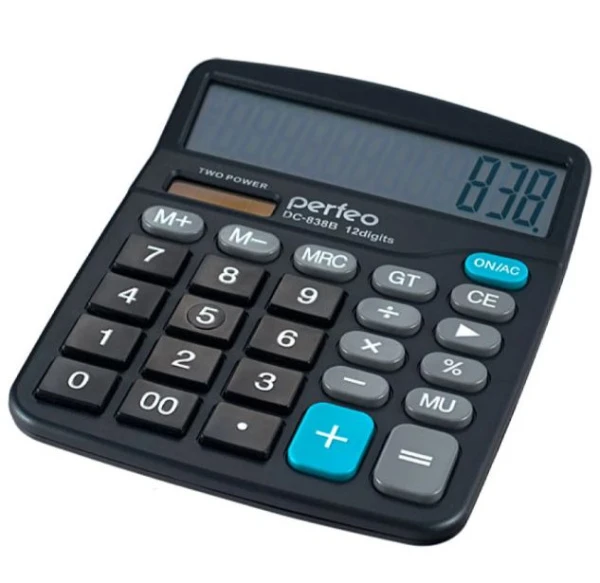 Стильный настольный бухгалтерский калькулятор PF_3288 (DC-838B) в черном пластиковом корпусе с чувствительными кнопками оснащен большим 12-разрядным матричным дисплеем.