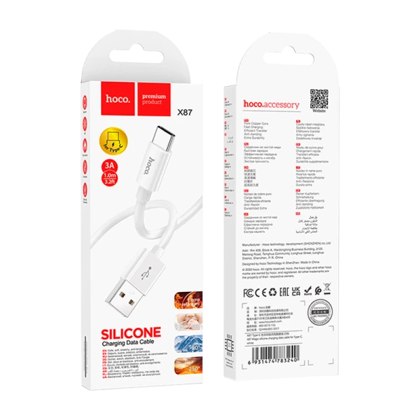 Кабель HOCO X87 USB (m)-Type-C (m) 1м 2.4A силикон белый (1/36/360)