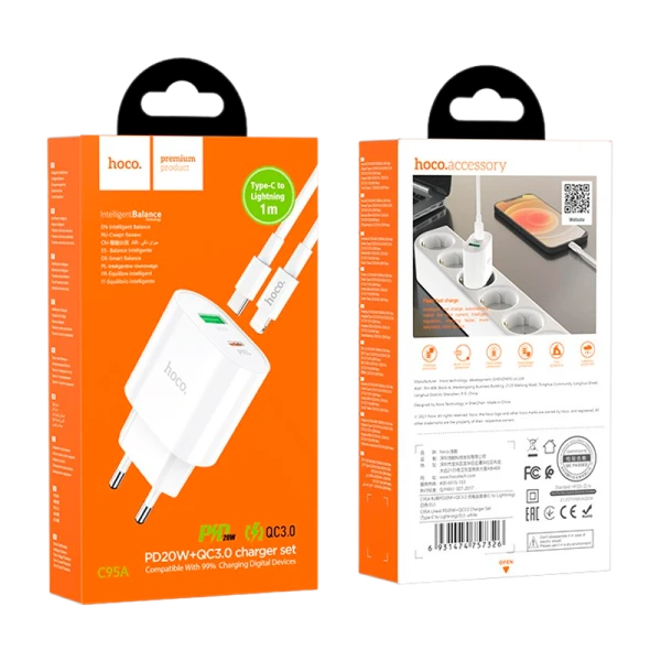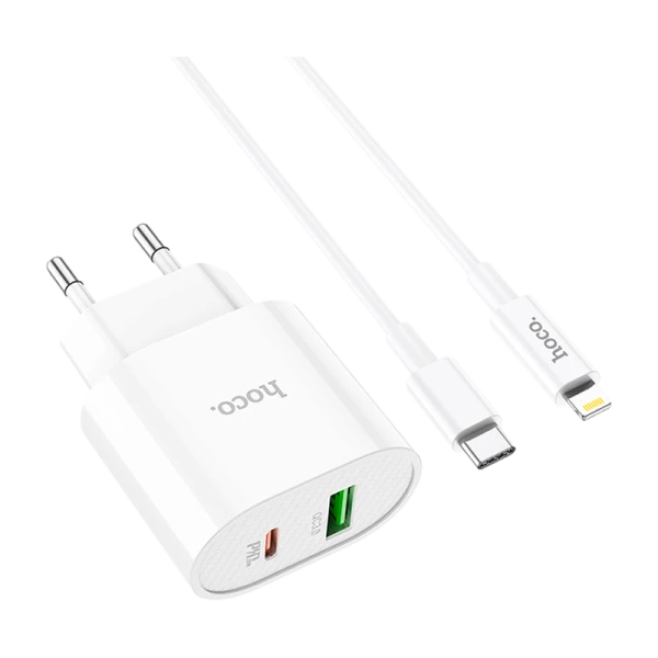 Сетевое З/У HOCO C95A 1USB/Type-C 3.0A 20W QC3.0 с кабелем Lightning/Type-C белый
