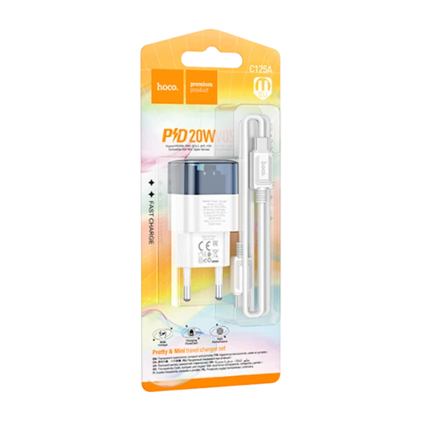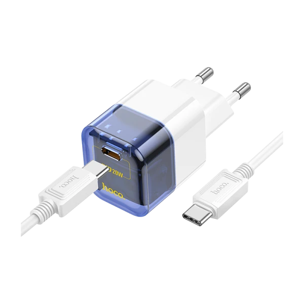 Сетевое З/У HOCO C125A Type-C 20W PD,QC,FCP,AFC с кабелем Type-C/Type-C белый синий