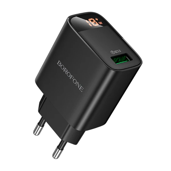 Сетевое З/У Borofone BA95A 1USB 18W QC3.0 дисплей черный (1/46/184)