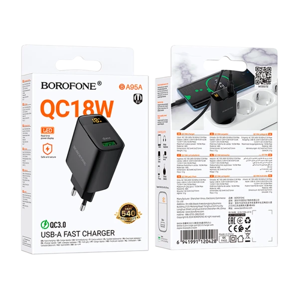 Сетевое З/У Borofone BA95A 1USB 18W QC3.0 дисплей черный.