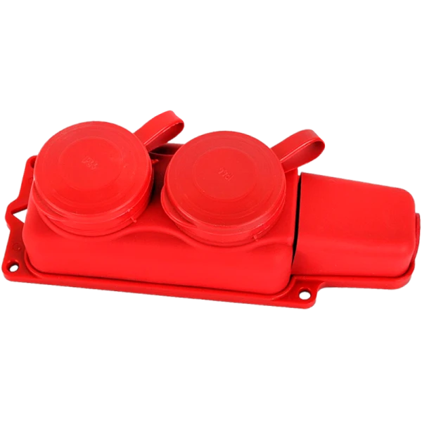 Колодка штепсельная VOLSTEN Sb1-M2Z Red с двумя розетками, степенью защиты IP44 и заземлением для безопасного использования в любых условиях. Номинальный ток 16А.