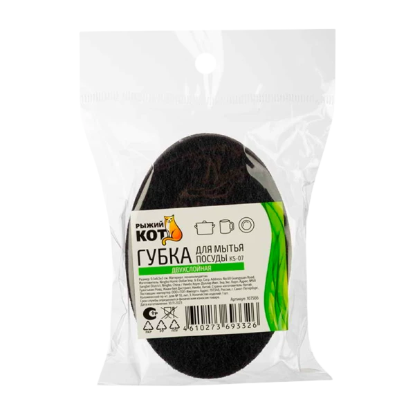 Губка для мытья посуды Рыжий кот KS-07, овальная форма.