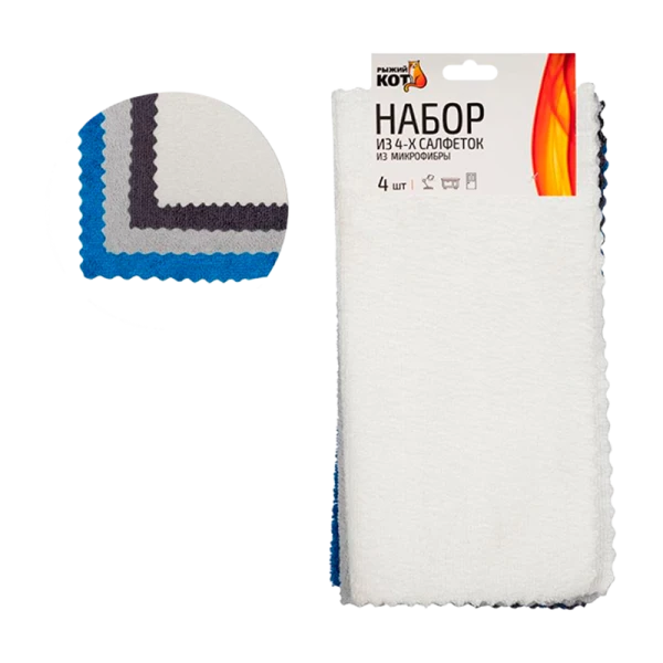 Салфетка Рыжий кот 30х30см 4шт. микрофибра ассорти;