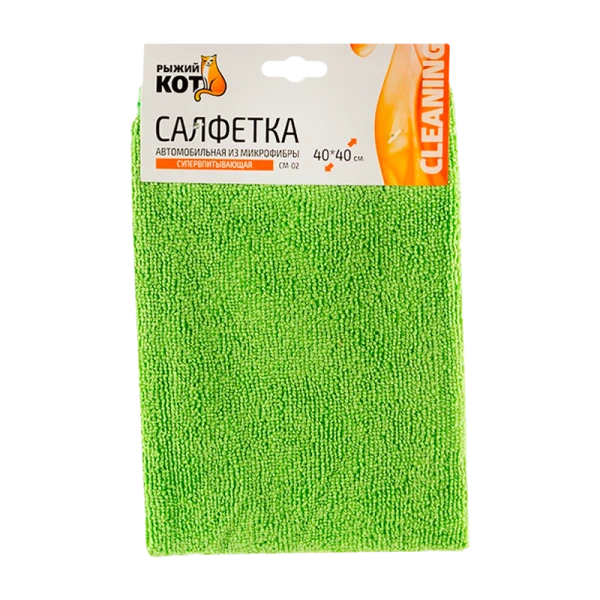 Салфетка Рыжий кот CM-02 40х40см микрофибра супервпитывающая зеленый (1/10/100)