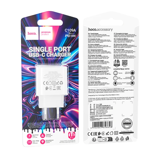 Сетевое З/У HOCO C109A Type-C 20W PD3.0 белый (1/36/216)