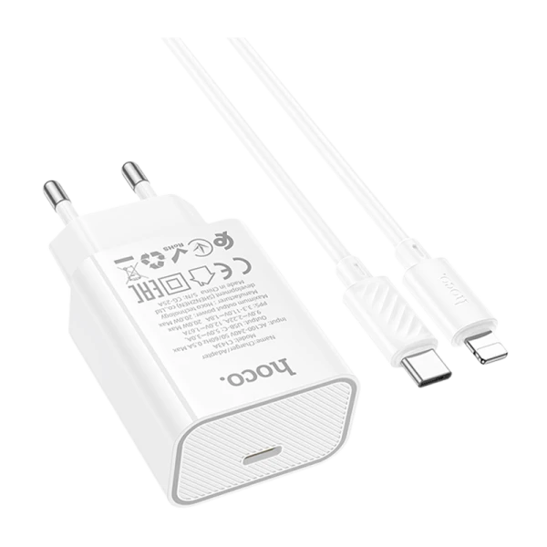 Сетевое З/У HOCO C143A Type-C 20W PD,QC с кабелем Lightning белый (1/28/168)