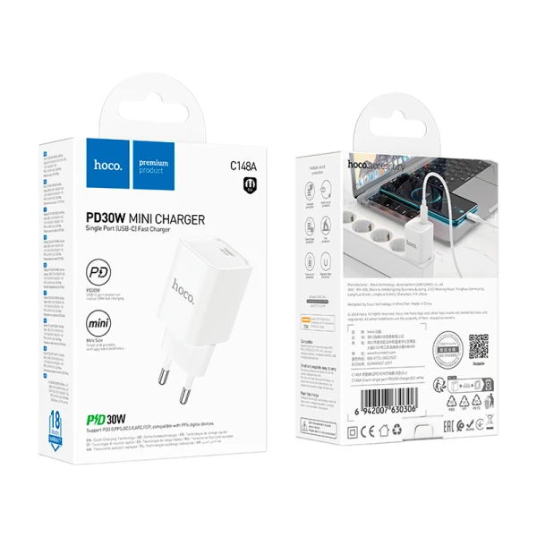 Сетевое З/У HOCO C148A Type-C 3.0A 30W PD3.0 белый.