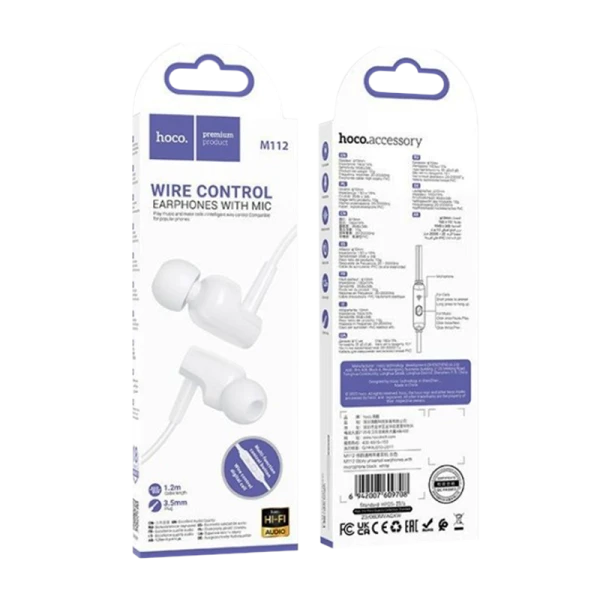 Наушники внутриканальные HOCO M112 с микр. белый (1/31/310)