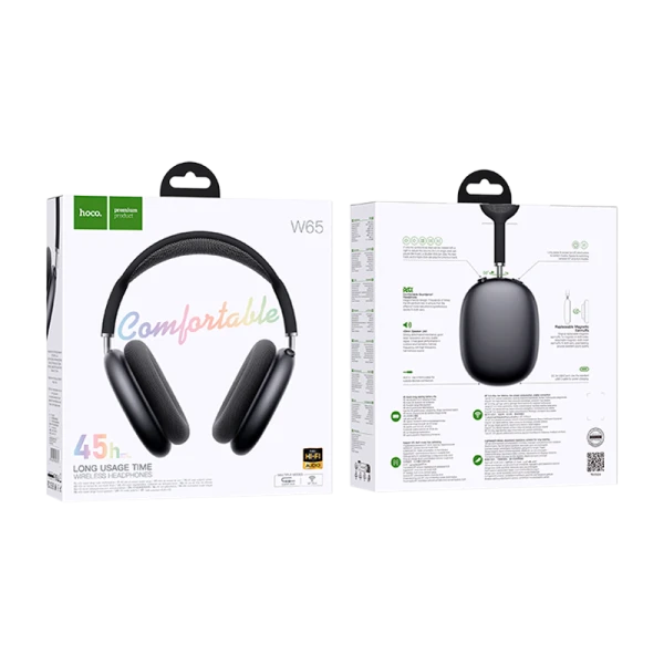 Беспроводные полноразмерные наушники HOCO W65 представляют собой высококачественный продукт, который обеспечивает свободу движений и комфорт во время использования. Наушники оснащены Bluetooth 5.4 и чипом JL7006F4, что гарантирует стабильное и быстрое соединение с вашим устройством. Емкость аккумулятора составляет 400 мАч, что обеспечивает до 45 часов непрерывного использования.