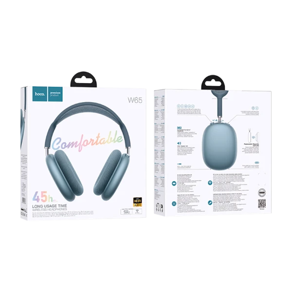 Наушники полноразмерные HOCO W65 bluetooth 5.4 с микр. синий (1/40)