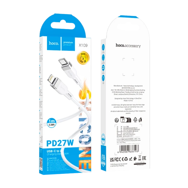 Кабель HOCO X109 Type-C (m)-Lightning (m) 1м 27W силикон белый (1/31/310)