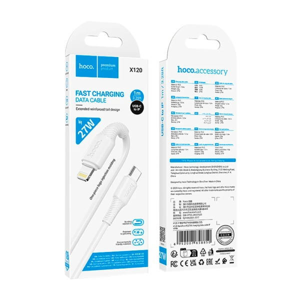 Кабель HOCO X120 Type-C (m)-Lightning (m) 1м 27W силикон белый.