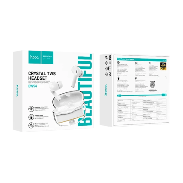 Наушники внутриканальные HOCO EW54 bluetooth 5.3 с микр. белый (1/20/200)