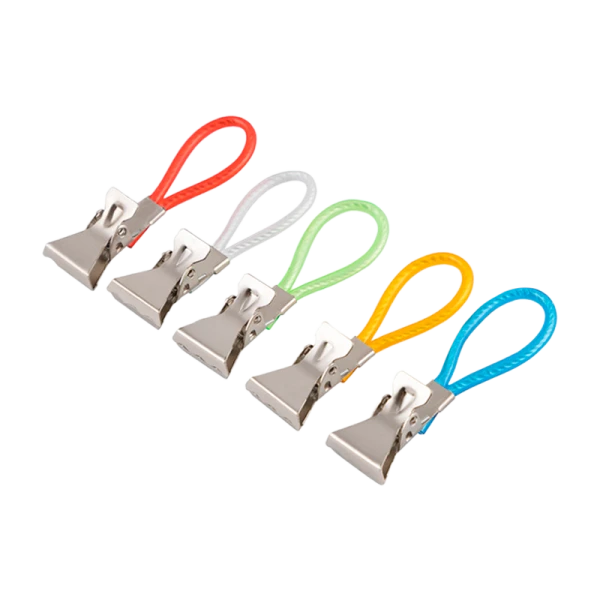 Удобный и крепкий зажим, с помощью которого можно повесить полотенца, тканевые салфетки, прихватки и фартук без петли.