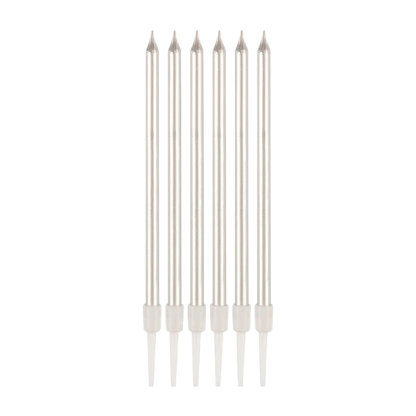 Свечи для торта Волшебная страна 13см с подставкой 6шт. серебряный (1/12/300)