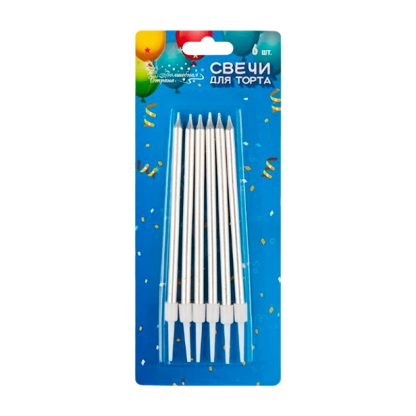Свечи для торта Волшебная страна 13см с подставкой 6шт.серебряный. Декоративные свечи отлично подойдут для украшения праздничного торта или другого десерта.