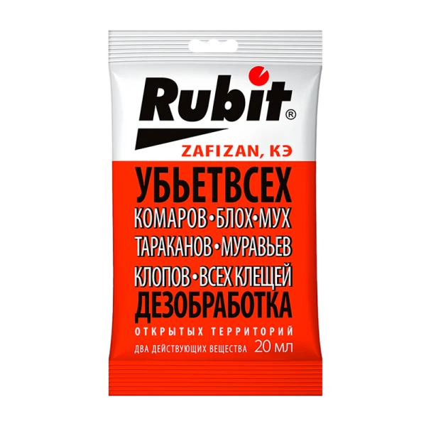 Средство Рубит ЗАФИЗАН 20мл - это эффективное средство для обработки территории от клопов, муравьев, тараканов, блох и клещей. Оно содержит циперметрин, который быстро и надежно уничтожает вредителей. Средство легко наносится на поверхности и быстро впитывается, не оставляя следов. Рубит Зафизан 20мл - это надежный способ избавиться от неприятных гостей в вашем доме или на участке.