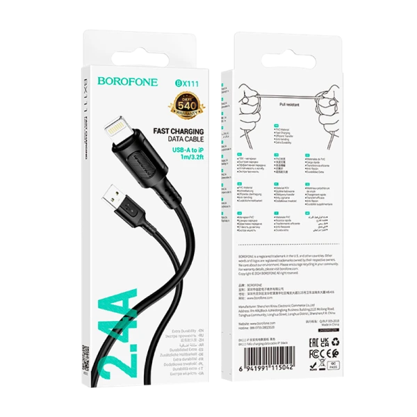 Кабель Borofone BX111 USB (m)-Lightning (m) 1м 2.4A ПВХ черный