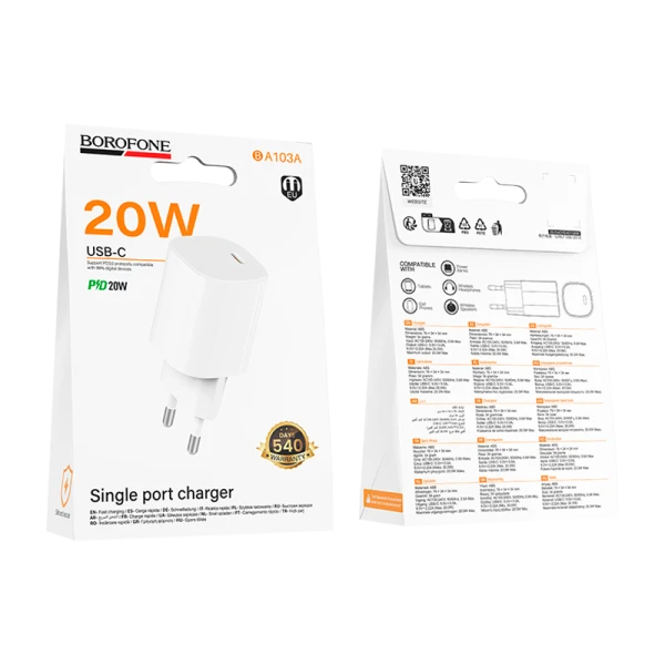 Сетевое З/У Borofone BA103A Type-C 20W белый (1/20/120)