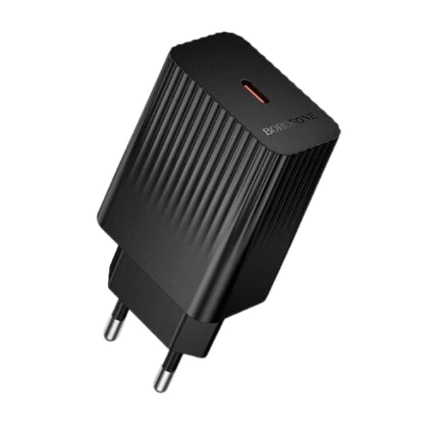 Borofone BAS73A - стильное сетевое зарядное устройство с выходом Type-C 20 Вт, вилкой EU и поддержкой протоколов быстрой зарядки QC 3.0 и PD 20W.