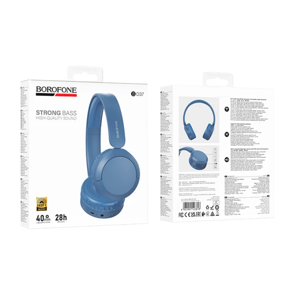 Наушники полноразмерные Borofone BO37 bluetooth 5.4 с микр. синий (1/60)