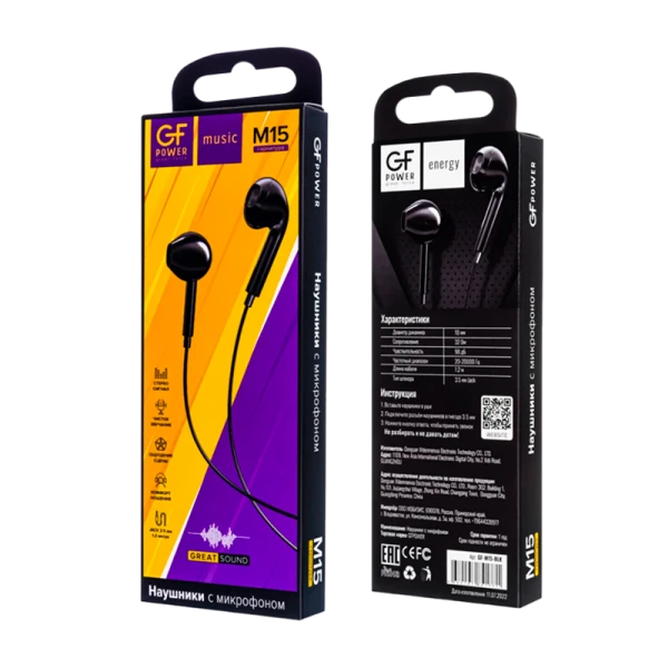 Оригинальные проводные наушники GFPower M15 с микрофоном.