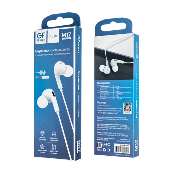 Оригинальные проводные наушники GFPower M17 с микрофоном.