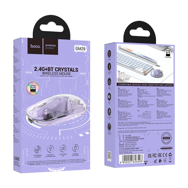 Мышь беспроводная HOCO GM29 классическая USB фиолетовый;