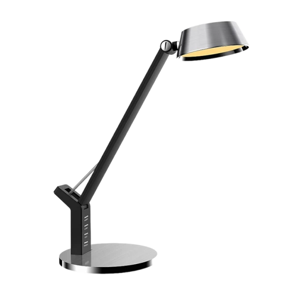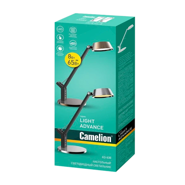 Светодиодный настольный светильник Camelion KD-835 C03 серебро LED представляет собой универсальное решение для освещения рабочих мест в офисах, домашних интерьеров, детских и подростковых комнат. Этот продукт от известного бренда Camelion обладает мощностью светильника 8Вт и номинальным напряжением 220В, обеспечивая световой поток в 480 лм. Корпус светильника выполнен из прочного и безопасного ABS-пластика, плафон и основание окрашены под металл, стойка - черного цвета с матовым покрытием. Светильник оснащен сенсорным управлением яркостью и цветом, а также USB-портом для зарядки устройств.