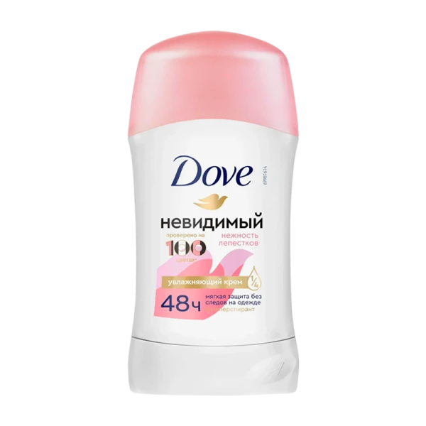 Дезодорант женский Dove Нежность Лепестков с рецептурой, содержащей полупрозрачные микрочастицы, не оставляет белых следов на одежде и обеспечивает эффективную защиту от пота и запаха на 48 часов для женщин с любым типом кожи. Дезодорант Dove на ¼ состоит из увлажняющего крема и содержит масло семян подсолнечника, обладающее увлажняющими и регенерирующими свойствами, помогающими от раздражения после бритья.