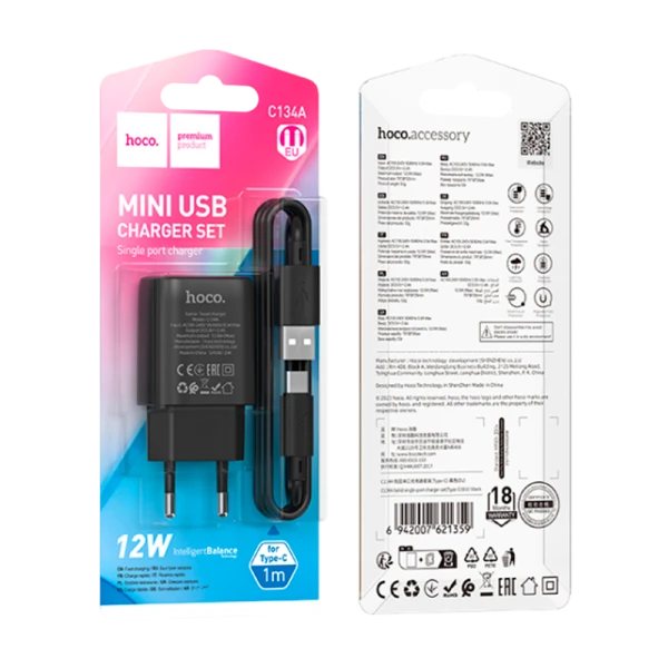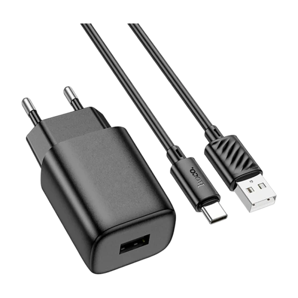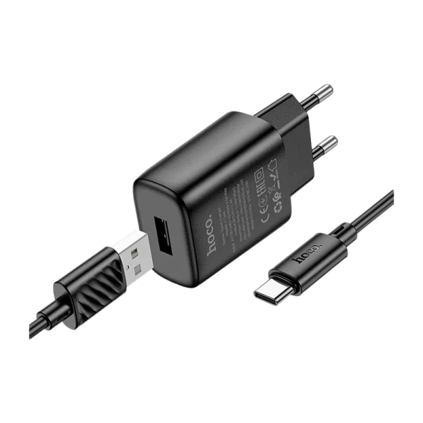 Сетевое З/У HOCO C134A 1USB 2.4A 12W с кабелем Type-C черный (1/28/168)