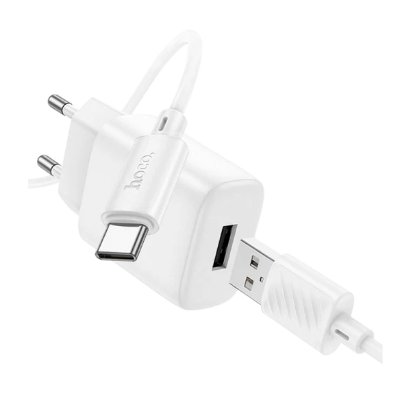Сетевое З/У HOCO C134A 1USB 2.4A 12W с кабелем Type-C белый (1/28/168)