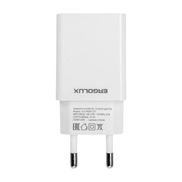 Сетевое З/У Ergolux ELX-РA02P-C01 1USB 10W белый (1/10/240)