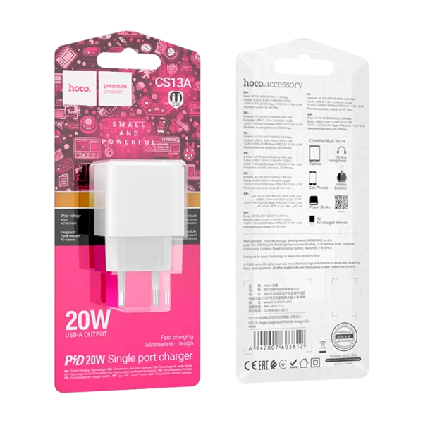 Сетевое З/У HOCO CS13A Type-C 3.0A 20W PD,QC белый.
