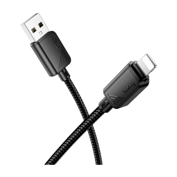 Надежный и долговечный кабель HOCO X113 USB - Lightning в черном цвете предназначен для быстрой зарядки и передачи данных между устройствами Apple и компьютерами или адаптерами питания.