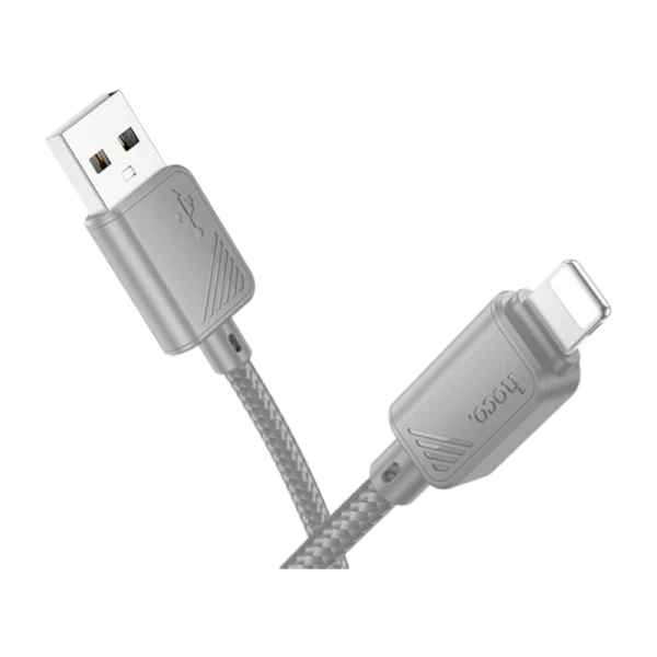 Надежный и долговечный кабель HOCO X113 USB - Lightning в сером цвете предназначен для быстрой зарядки и передачи данных между устройствами Apple и компьютерами или адаптерами питания.