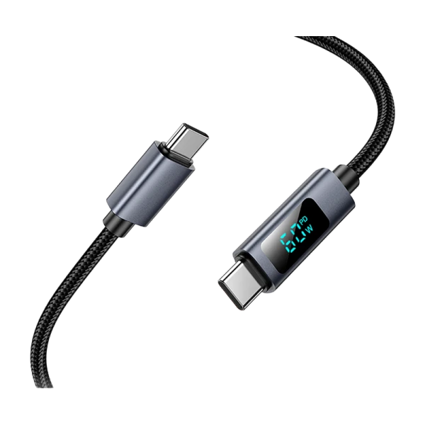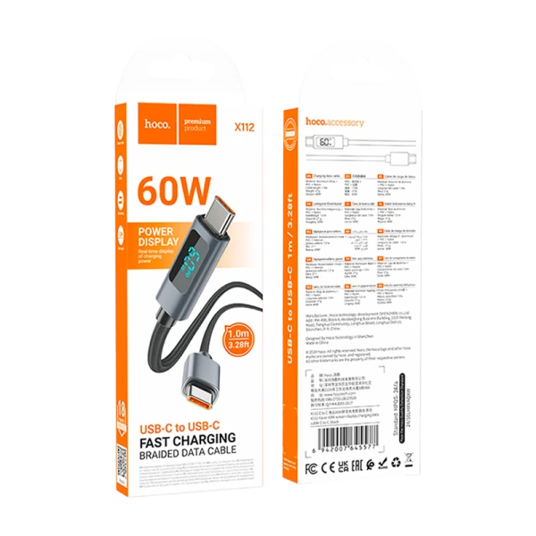 Кабель HOCO X112 Type-C (m)-Type-C (m) 1м 3.0A 60W нейлон дисплей черный цвет.