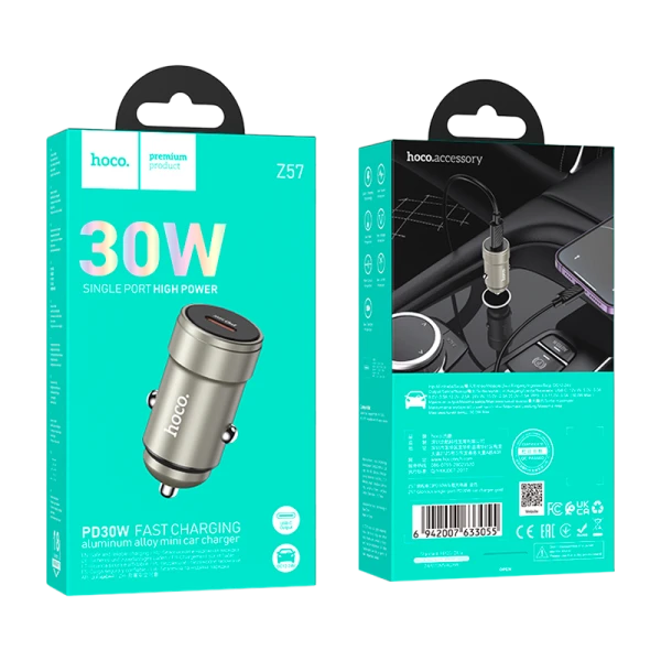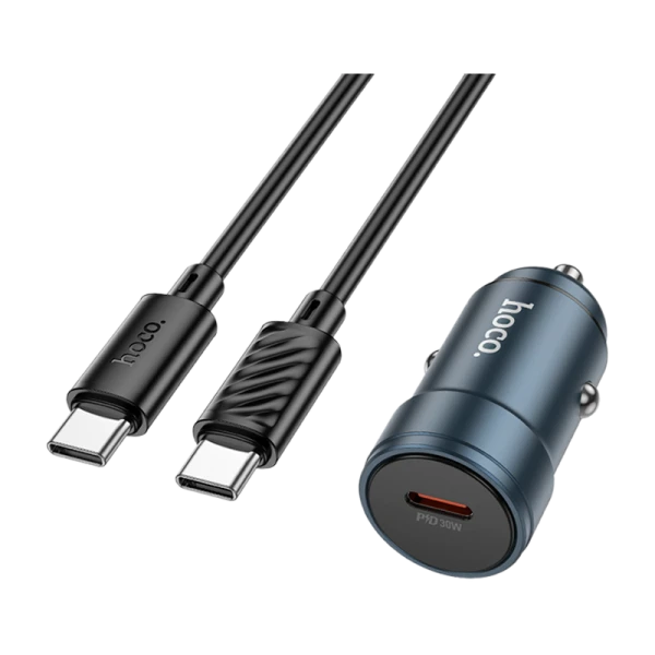 Автомобильное З/У HOCO Z57 Type-C 3.0A 30W PD3.0 с кабелем Type-C, цвет металлик.