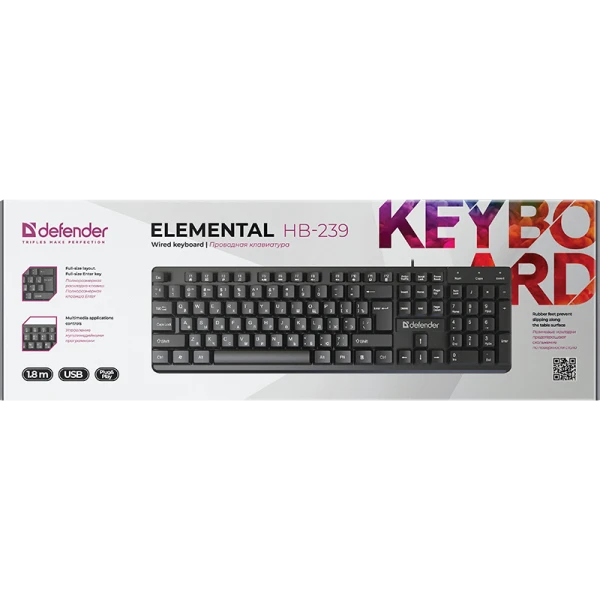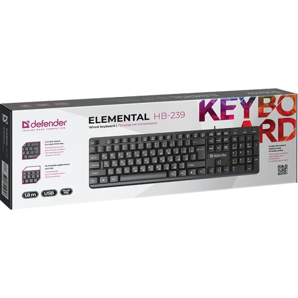 Клавиатура проводная Defender HB-239 RU Elemental классическая USB 1.8м черный (1/20)