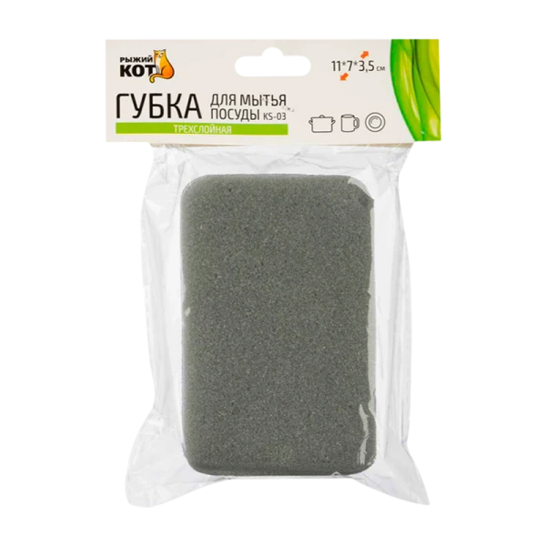 Губка для посуды Рыжий кот KS-03 110х70х35мм трехслойная (1/50/500)