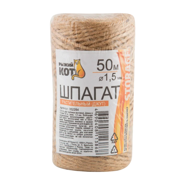 Шпагат растительный, джутовый "Рыжий Кот" представляет собой высококачественный продукт, изготовленный из лубяных волокон джута.