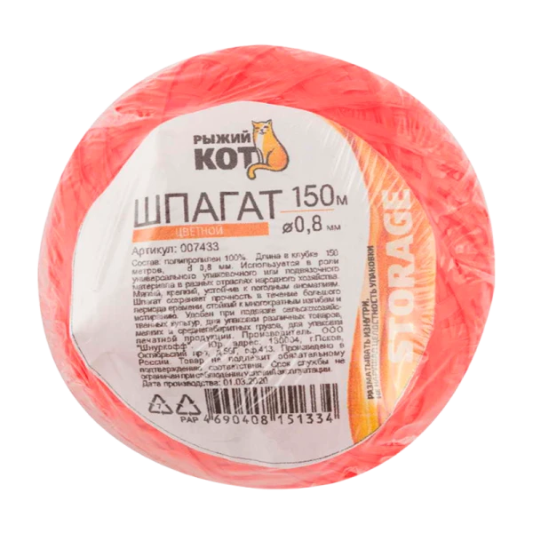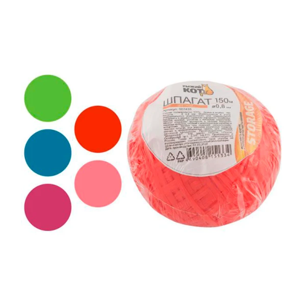Шпагат цветной Рыжий кот клубок диаметр 1.5мм 150м. ассорти.